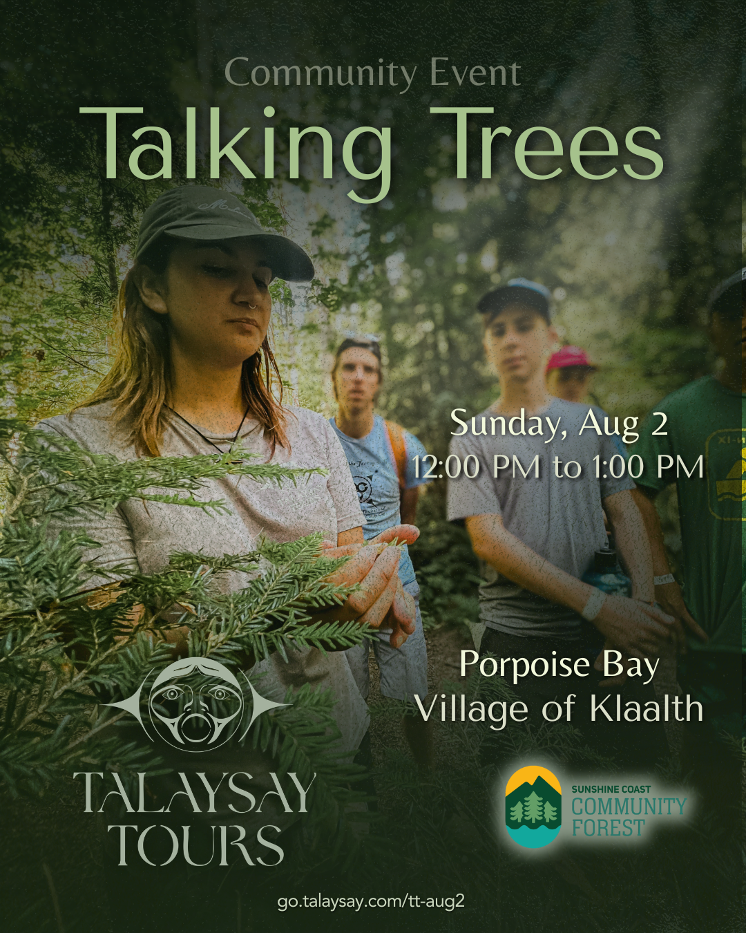 Join us for a complimentary community forest walk at Porpoise Bay, offered in partnership with the Sunshine Coast Community Forest. Through story, observation, and sensory awareness, Talking Trees invites you to slow down, listen, and connect with the living systems around you.