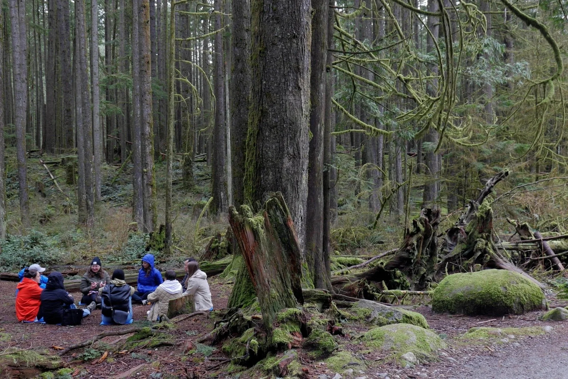 Rather than focusing on distance or physical challenge, Forest Therapy encourages guests to notice the textures, sounds, rhythms, and living presence of the natural world around them. Each experience is shaped by the qualities of the place, the pace of the group, and the simple act of paying attention.