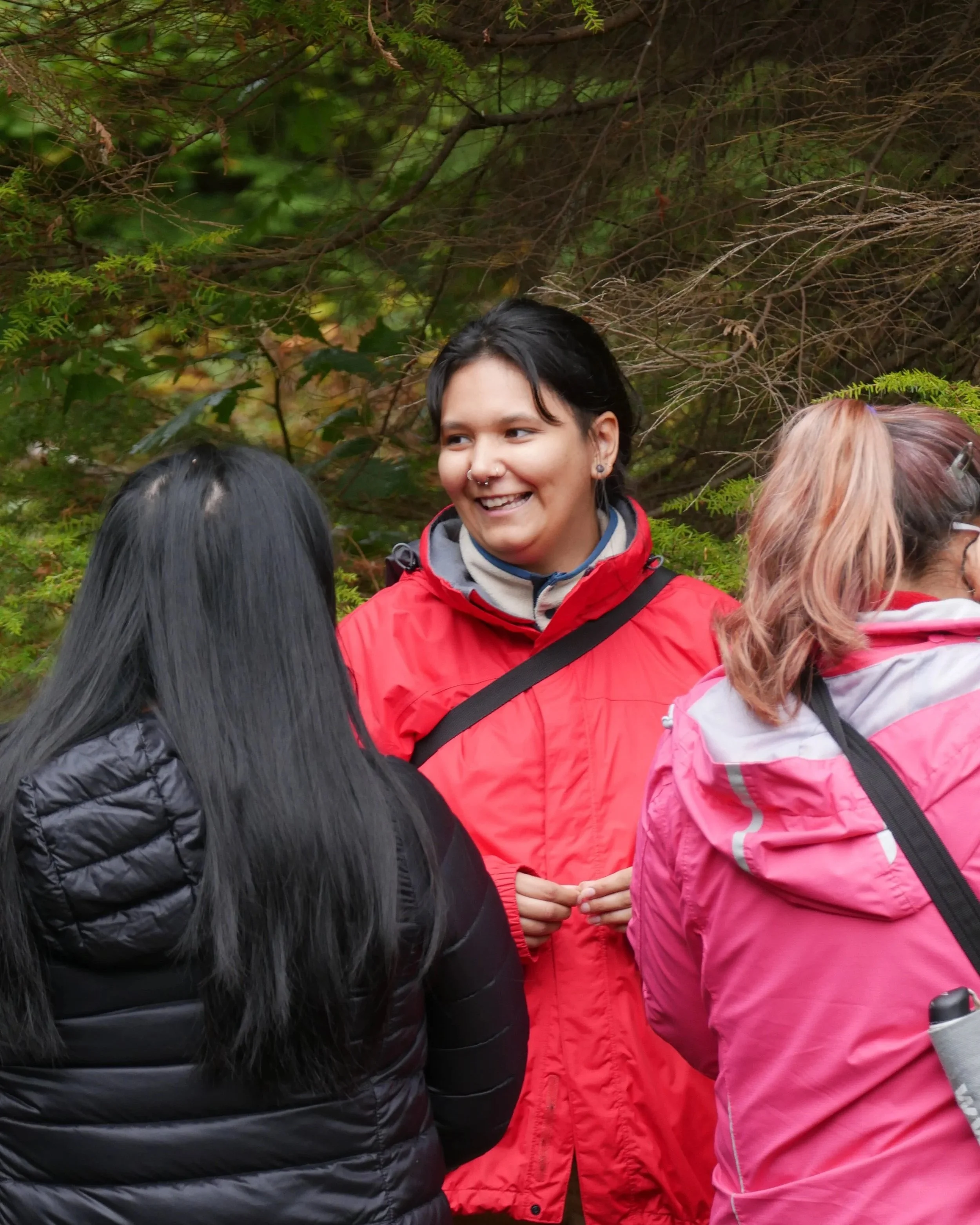 We gather at the Capilano River Hatchery (qiyəplenəxʷ), a peaceful meeting place surrounded by towering evergreens and the flowing rhythm of the river. Guests can find ample parking throughout the area, and our tour begins beside the main hatchery building before following gentle forest trails that wind along the water.