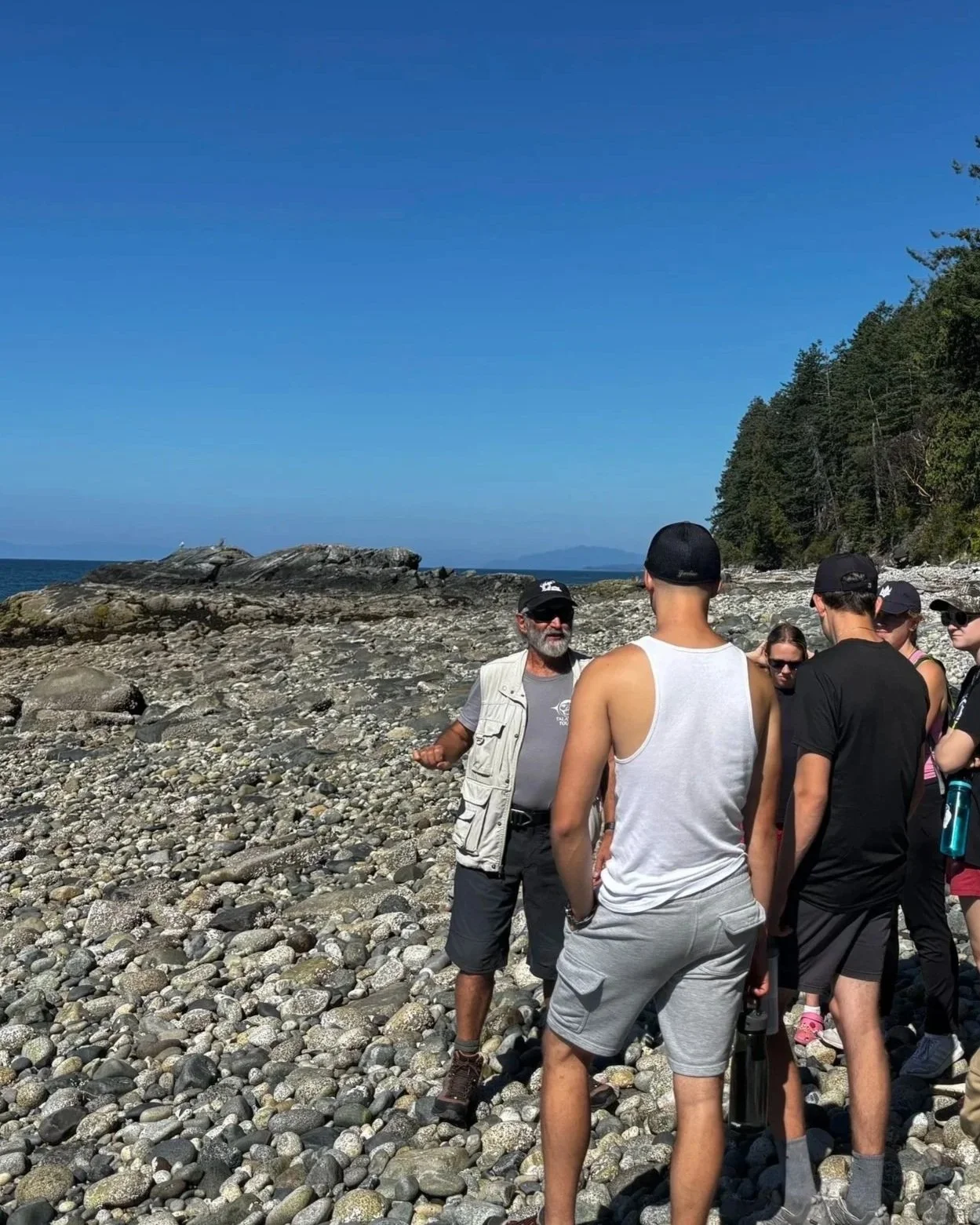 Your journey begins with a land acknowledgment and a gentle orientation to the relationships that connect us to this place. As you walk along the coast, you’ll discover how the rhythms of the ocean, the forests, and the seasons sustain life; from shellfish and seaweed to towering cedars and the medicines found among them.